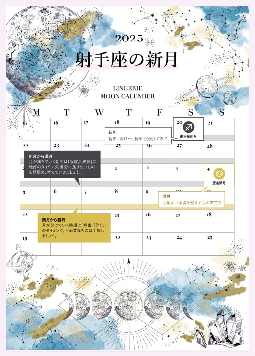 Fascinate(ファシネイト)| 本当は自由でハッピーな大人のランジェリーライフマガジンFortuneLingerie Moon Calendar[ 2025年 射手座の新月 ] LINGERIE MOON CALENDAR