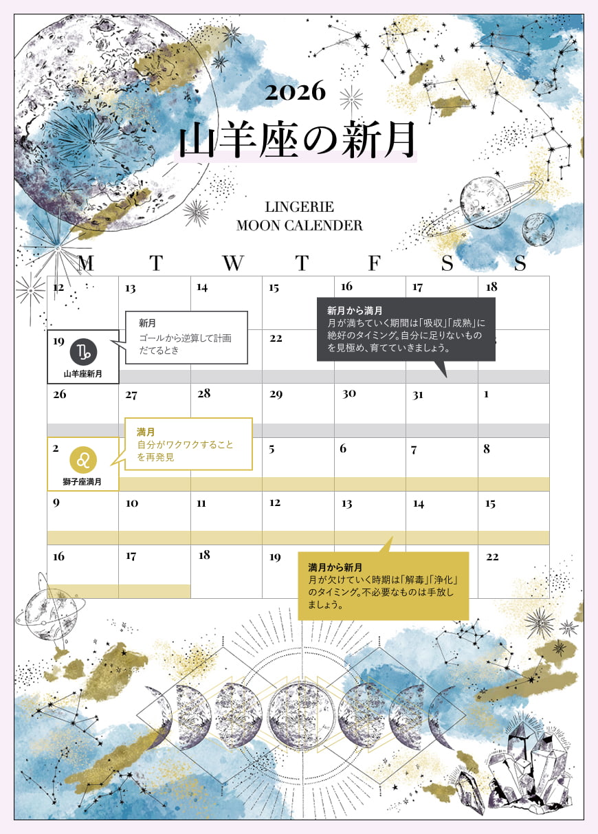 Fascinate(ファシネイト)| 本当は自由でハッピーな大人のランジェリーライフマガジンFortuneLingerie Moon Calendar[ 2026年 山羊座の新月 ] LINGERIE MOON CALENDAR